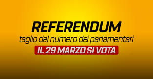 Referendum costituzionale confermativo per la riduzione del numero dei Parlamentari. Si vota domenica 29 marzo 2020 dalle ore 07.00 alle ore 23.00.